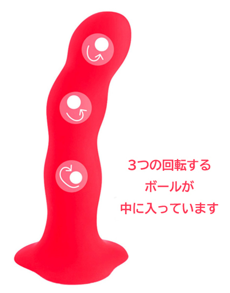 膣トレ用にも最適!3つのボールが内側から刺激する吸盤付きディルド。ウェーブ形状のボディに内蔵された重厚な鉄のボールが中でコロコロと動きまわり、膣壁を優しく刺激する!素材には滑らかで柔らかなプレミアムシリコンを採用し挿入もスムーズ♪底には床に貼り付けられるよう吸盤が付いています。華やかなレッド※こちらの商品は受注発注商品の為、ご注文から発送までに3、4営業日掛かる場合が御座います。