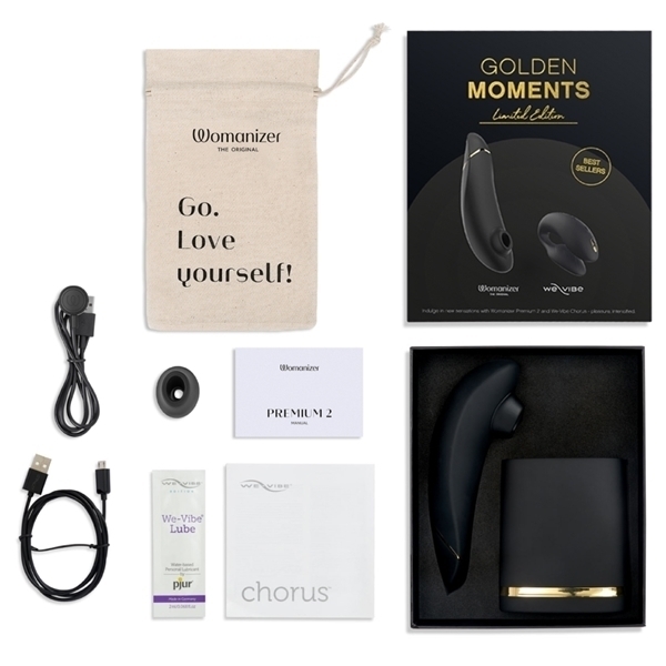 ウーマナイザーとカップルバイブの豪華セット!ウーマナイザープレミアム2は14段階の吸引強弱がコントロールできるハイグレードモデルです。パイロット機能搭載で、吸引の強弱を自動でコントロールしてくれます。ボタンを押さなくても当てるだけで自動で吸引ON/OFFしてくれる「タッチセンサー」機能も搭載。We-VibeChorusは世界で一番売れているカップルバイブです。※こちらの商品は受注発注商品の為、ご注文から発送までに3、4営業日掛かる場合が御座います。