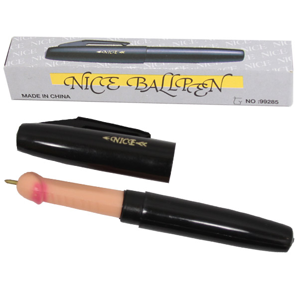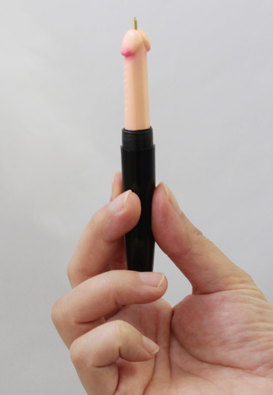 見た目はごく普通のボールペン。しっかり書ける実用性。但し、蓋を開けるときは周りにご注意を。