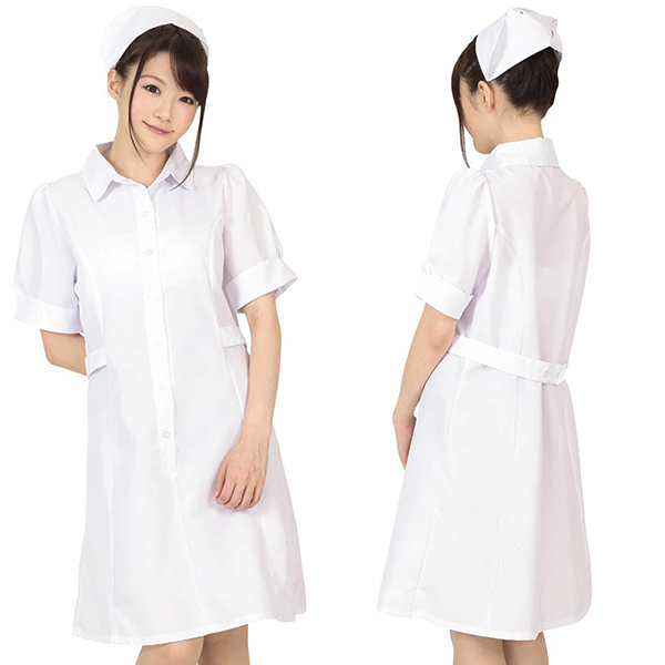 丸い襟と今風のパフスリーブがかわいい!本物のナース気分が味わえちゃうリアルなコスプレ衣装です!キュッと引き締まったウエストラインがセクシー。癒し度満載の真っ白なナースワンピースです!※ストッキングは付属しません
