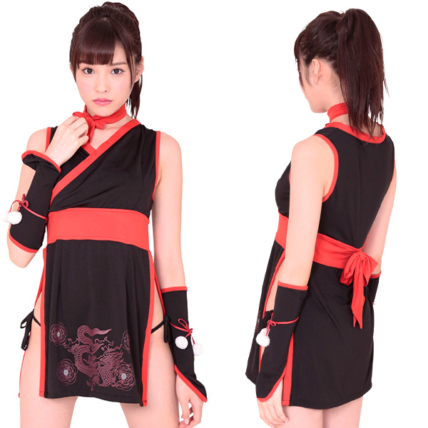 帯と着物が一体化していて、全体的にスラッとしてみえる姫忍者。前下辺りには龍の模様がプリントされていて、カッコ良さバツグン!!横からチラッと見えるようなセクシーな見せパンも、Tバックでハツラツ!