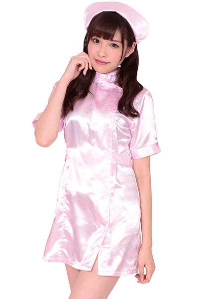 ワンピース&ナースキャップがセットになったコスプレ。ミニ丈ワンピースのギリギリ感と、清楚なイメージのナース姿はとっても誘惑的!光沢感のあるキュートなピンクカラーが、セクシーさと可愛らしさの両方を演出してくれます。フロントはボタン式で下まで開きます。※Lサイズ(b18108)、LLサイズ(b18127)あります。