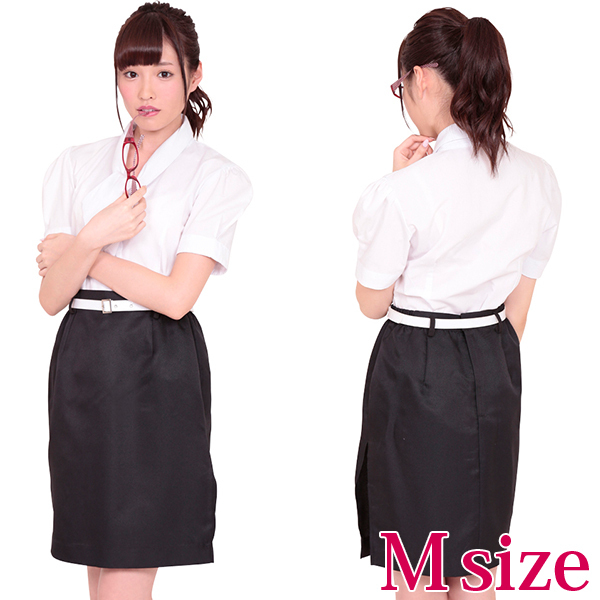 清楚な白の半袖ブラウスが男性の好奇心を煽る、あこがれの女教師コスプレ衣装です。サイドに深いスリットが入ったスカートはとてもセクシー!知的で大人っぽい女性にへ変身したら、周囲の人気も独り占め!※メガネは付属しません