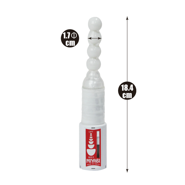 ミルキーな4つの玉が連結!お尻に優しいコーティング仕様のアナルバイブ。ミルクのように真っ白な玉を4つ連ねた国産アナルバイブは、単4電池×3本が作り出す強力な振動が自慢!自在に曲がる挿入部分の先端まできちんと伝わって、肛門も腸内も刺激します!操作はスライドのみで簡単!バイブレーションを無段階に調節できて便利です。