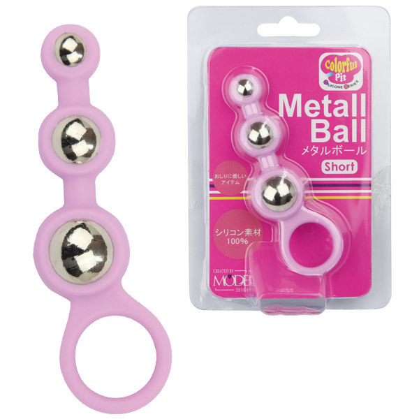ヒンヤリとした質感が新たな快感を呼び起こすアナルグッズ「カラフルピット メタルボール ショート」。しなやかでソフトなシリコン素材の中に、重みのあるメタルボールをはめ込んだ異素材の出会いが新鮮で刺激的!小・中・大3種類のボールで快感も徐々に大きく…。使いやすい持ち手リング付きで、初心者にも扱いやすいアナルグッズです。