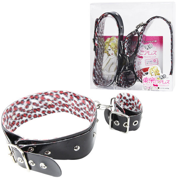現役SM嬢プロデュースの純国産グッズから、ハードな黒ベルトの太腿枷&手枷が登場。幅広い層にSMを楽しんでもらいたいというコンセプトで作られた、お洒落な拘束グッズ。裏地にレオパード柄の柔らかな布地を使用し、肌を傷つけにくくなっています。また、両ベルトの間はナスカンで繋がれているので、分離も簡単。きらめくスタッズが粋なSM拘束具です。