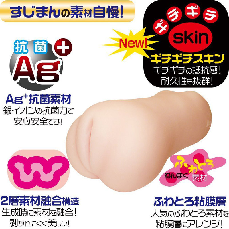 巷に「くぱぁ」旋風を巻き起こした超絶ヒットオナホール「すじまんくぱぁ ろあ」に、ギチギチHARD Editionが登場。本体のフォルムはオリジナルそのままに、ハリのあるピチピチの硬質素材を使用!インナーにはふわとろ素材を採用し、2層構造に仕上げられています。AG+配合で安心安全に長く楽しめるのも嬉しいポイント!高刺激仕様へと変身したろあちゃんのアソコに、病みつき必至のオナホールです。