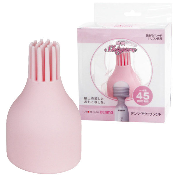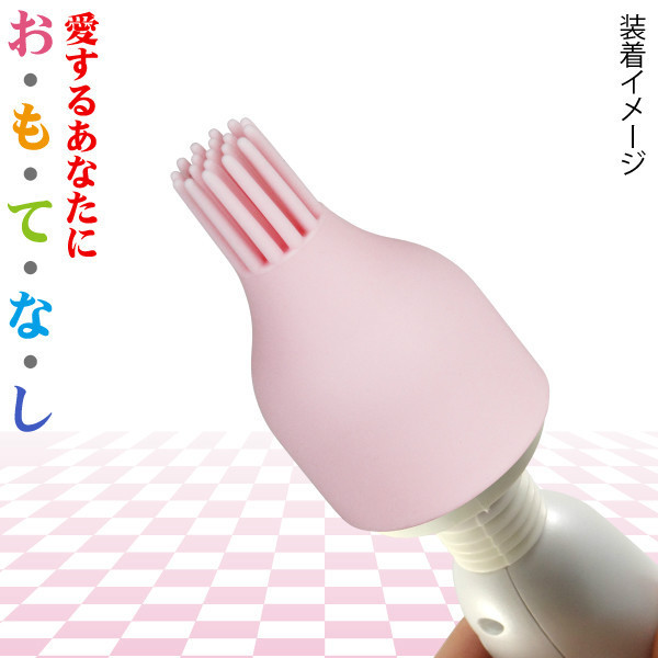 プルプルと快感ポイントに微振動を伝える刷毛型アタッチメント。まるで時雨に打たれているような優しいバイブレーションによって、ジワジワと責めることができる高品質シリコン製の電マ用アタッチメントです。女性ウケするピンク色!一気に昇りつめるより、ソフトな刺激でじっくりと逝きたい場合にどうぞ。※別売りの「おもてなしデンマ(b21566)」だけでなく、ヘッド直径4.5cmの電マ(フェアリーミニ等)であれば装着可能です。