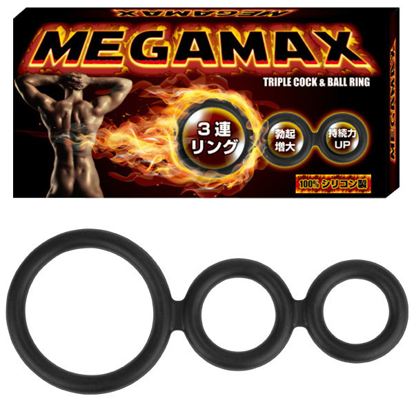 大中小のリング側面を連結!屏風折りにすることで平面から立体形になる黒いコックリング。いつもよりギンギンになったペニスで長時間プレイ!玉袋の裏を通してペニスの根元から勃起をサポートできる、シンプルな3連コックリングです。シリコンの締め付けは少しキツめの仕上がり!連結部分をカットして個別に使用する事もできます。