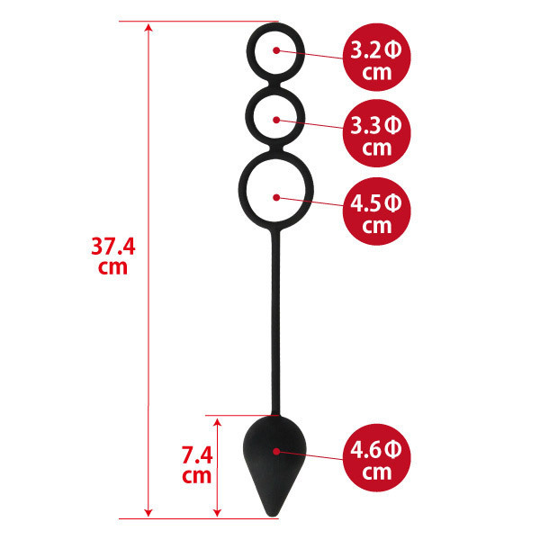 パッケージ:20.0×13.0×5.5cm 本体:全長:37.3cm 内径小3.1φcm・中3.1φcm・大4.5φcm プラグ部分:7.3×4.6φcm