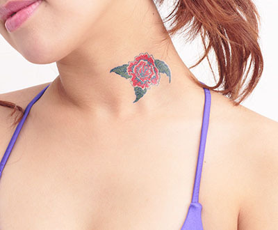 首すじ・胸元・腕・足首、アナタならどこに貼る?ただ一箇所に貼るだけでもセクシーに見せられる薔薇柄の本格的な刺青シールです。入浴はもちろん、プールや海に入っても剥がれないので安心してオシャレを楽しめるファッションアイテム。皮膚の動きに合わせて伸び縮みするので、剥がれるまでキレイなまま!パーティーやお祭りといったイベントにオススメなボディシールです。
