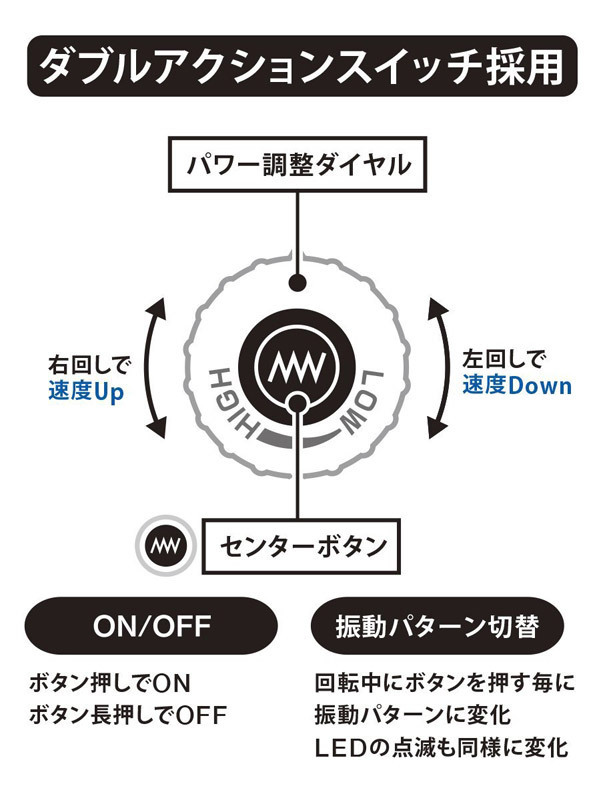 超話題になったデンマが再び登場!進化を遂げた究極の電動マッサージャー。●前作より細長いスリム形状●ヘッドは汎用性高めな45mm径を継承●速度調節はくるくる回すダイヤル式●右回しで速度UP・左回しで速度DOWN●中央のボタンで振動10種切り替え●ボタンを押すとON、長押しでOFF。あの伝説再び!絶対イクと話題沸騰になった最強玩具がさらにパワーアップ。無段階の速度調節機能に10種のリズム切り替えを装備、さらにフレキシブルなネックで敏感部分を徹底的に追い詰めます。45mm径のアタッチメントなら装着可能な汎用性が嬉しい電マです。※安全の為、15分間以上の連続稼働はおやめ下さい※本体が過度に熱くなった場合は、速やかにご使用を中止して下さい※ご使用後は本体から電池を取り外して保管して下さい
