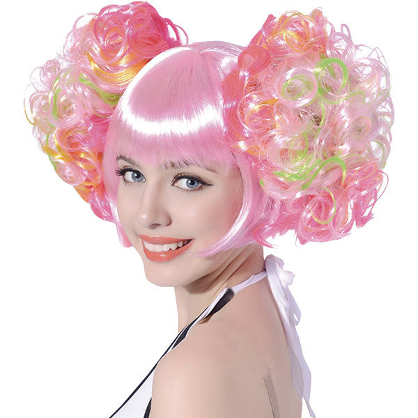 ド派手にきらめくヘアスタイルでパーティーの主役に♪ツインアップのカラフルウィッグ。●ショートボブベースのフルウィッグ●ピンクにポップなカラフルメッシュをプラス●両サイドはボリュームカールでゴージャスに。パーティーの余興やコスプレ衣装のお供にピッタリの個性派スタイル!とにかく目立ちたいアナタにおすすめのフルウィッグです。※こちらの商品は受注発注商品の為、ご注文から発送まで2〜3営業日掛かる場合が御座います。