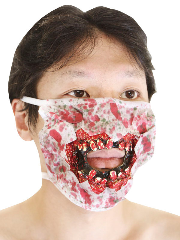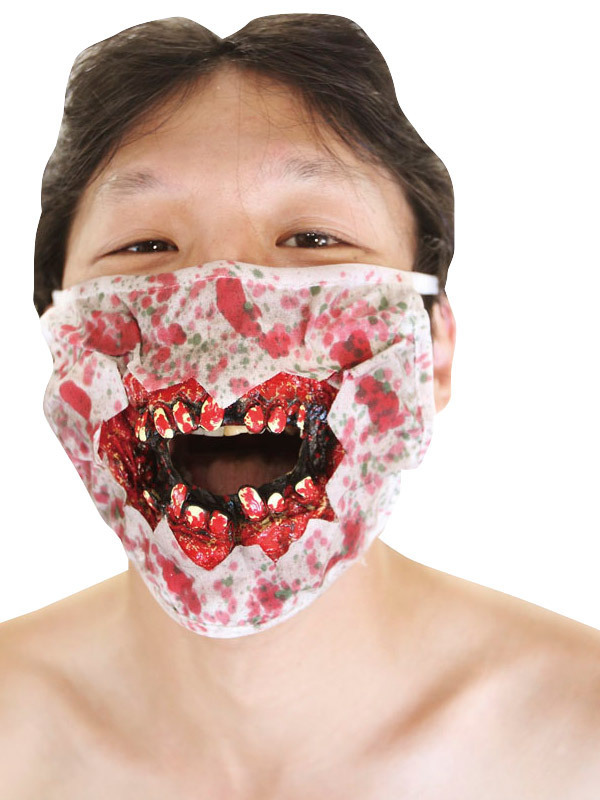 グロテスク度満点!口だけゾンビに変身できるスプラッターなお手軽マスク。●歯と血のり加工を施した簡易マスク●装着するだけでゾンビのような口元に●口部分は穴開き仕様●男女兼用のフリーサイズ。ゾンビナースのコスプレにもぴったりのホラーグッズ!ハロウィンパーティーやイベント、肝試しにもお勧めです。※こちらの商品は受注発注商品の為、ご注文から発送まで2〜3営業日掛かる場合が御座います。