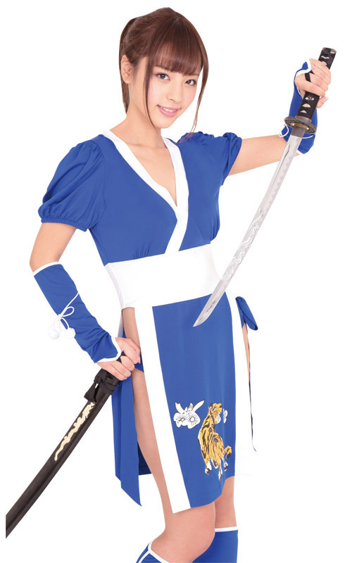 見せパンスタイルの「くのいち」参上!大胆アレンジがセクシーな女忍者コスプレ。●セクシーな「くノ一」装束風セット●凛とした青が美しい帯一体型のワンピース●大胆アレンジのサイドスリット仕様●虎を描いたフロントデザイン●サイドリボン付きの見せパン●雰囲気アップの手甲・脚絆もセット。チャイナドレスよりも大胆に入ったスリットが超セクシー!ハロウィン仮装にもぴったりの忍者コスチュームです。※刀は付属しません。