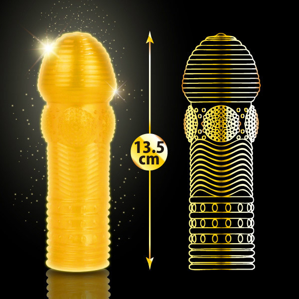 超眩しい!ゴージャス感満点オールカバータイプのペニスサック。●煌びやかなゴールドカラー●よく伸びるストレッチ素材・しっかりフィット●安心安全なエラストマー製●先端から根元まで覆うフルカバータイプ●様々な形状がダイレクトに刺激を伝えます●勃起力&早漏防止効果に期待。これさえあれば夢にまでみたロングプレイが可能になる!性に悩む男性の身も心もしっかりサポートする男性補助グッズです。