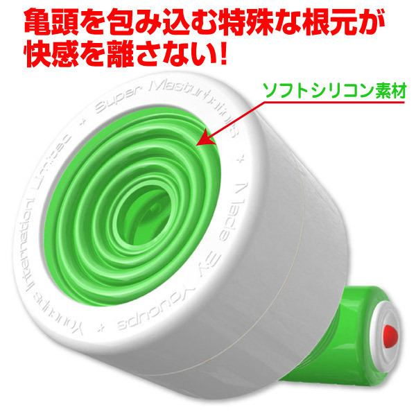 ピラミッド突起の激しい刺激でカリクラッシュ!カラフルポップな亀頭用の電動オナニーグッズ。●グリーンカラーのTYPE02「クラッシュ」●ソフトシリコンの入口が優しくホールド●高刺激のピラミッド型突起●尿道責め突起を最奥に配置●先端に強力モーター搭載●振動パターンは12種類。抜群のフィット感を生み出すヒダ形状の挿入口でしっかりキャッチ!多種多様なイボと振動で亀頭を集中攻撃してくれるスタイリッシュな電動オナカップです。