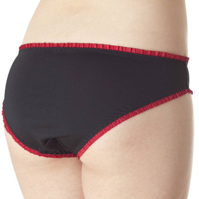 黒×赤のコンビネーションがバツグン!ローライズのハーフバックショーツ。●デイリーにも使いやすいローライズ●すっきりシンプルなブラックベース●赤ギャザーフリルでパイピング●履きやすいハーフバック。ギャザーフリルのトリムをより生かしてくれる2色使いのシンプルスタイル!浅履きのローライズなので普段使いのランジェリーとしても重宝してくれます。