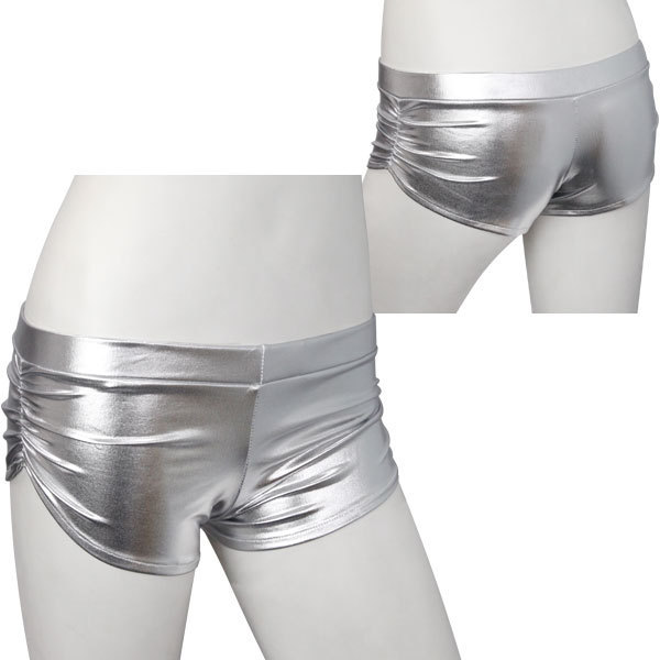 ピチピチ感がたまらない!セクシーなお尻を強調するメタリックホットパンツ。●光沢感溢れるメタリックシルバー●どこかセクシーさを感じるホットパンツ●タイトなつくりながら履き心地抜群●ダンスコスチュームのお供にGOOD●Mサイズ。サイドのギャザー入りラインがオシャレなセクシーコスチュームです。