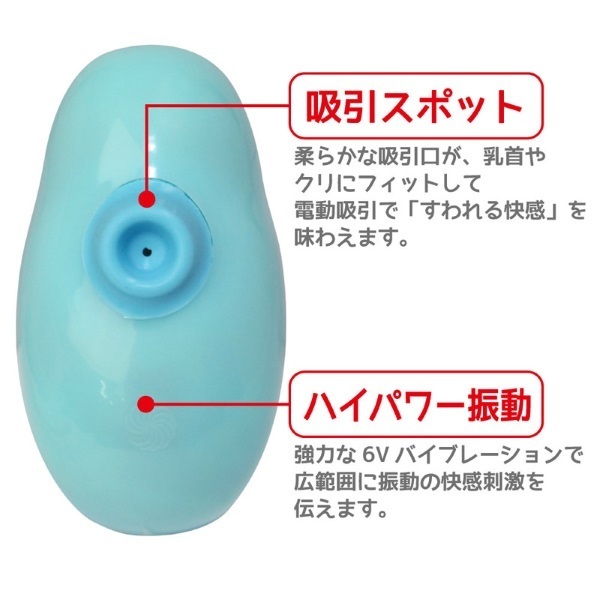 今まで体験したことのない新しい快感がアナタを襲う…!吸って震えて刺激を与える新感覚ローター(ブルー)。●手に馴染むマウス型●女性でも扱いやすいコンパクトサイズ●吸引部:柔らかなソフト樹脂素材を採用●ダイヤル式コントローラー(LED内蔵)●6V強力モーター搭載●静音なのに強力吸引●クリトリスや乳首責めに最適●単四電池×4本使用。広範囲に伝わる快感刺激!クリトリスや乳首を愛撫されているような感覚が味わえる女性用オナニーグッズです。