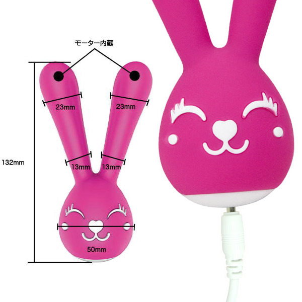 ニコニコ笑顔がとっても可愛い♪大きな耳が特徴のウサギ型ローター。●スイスのトイブランド「Dibe」製品●「Nancy」バージョン●ラブリーなビビッドピンクカラー●本体(全長):約13.2cm/耳の幅:約2.3cm●肌触りのいい柔らかシリコン製●「挟み」に適した二股タイプ●両耳それぞれに強力モーターを搭載●6種類の振動●ウサギのお鼻を押すと電源ON・長押し→OFF●充電中→LEDライト点滅●充電完了→LEDライト点灯●外出先でも便利なUSB充電式●底部:プラグ差し込み口。乳首やクリを挟み込んで振動刺激を存分に味わっちゃいましょう。