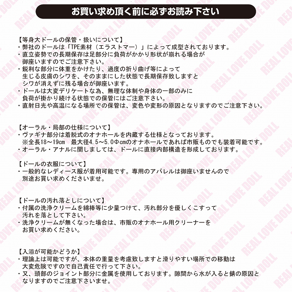 パッケージ:30.0×140.0×43.0cm 身長:145cm 体重:約29kg スリーサイズ:B80cm・W51cm・H75cm