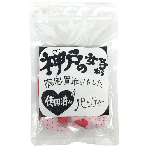 脱ぎたてホヤホヤ!?兵庫・神戸の一般女性から買い取ったお宝パンティー。●限定買い取りシリーズ●パンティ1枚をパウチに密封●中身の色・柄・形状はランダム●厳選買取りの本物志向。神戸っ娘のアソコに一日中密着していたであろうお宝パンティー!嗅ぐ、こする、履く…と、高い汎用性を誇るフェティッシュなアイテムです。※アソートとなりますので、色・柄・種類のご指定はできません※USED加工を施した新品未使用品です