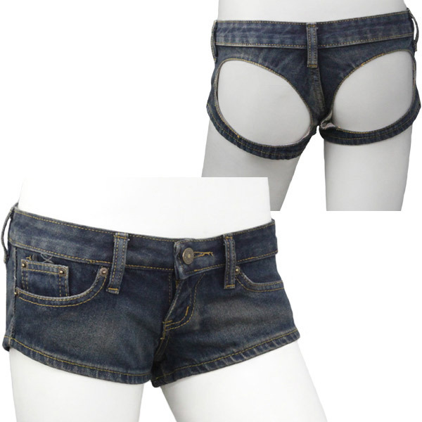 お尻の丸みがこんにちは♪ヒップ部分を大きくカッティングした超セクシーな極浅デニムパンツ。●ヒップオープンデザイン●伸縮性のある柔らかいデニム生地を使用●締め付けず履き心地バツグン●丁寧な縫製でとっても丈夫●女性用Mサイズ●W58〜70cm・H87〜95cmのボディに適応。前から見ると普通のデニムパンツなのに、後ろはヒップを大胆に露出したオープンデザイン!男性の視線を釘づけにするセクシーコスチュームです。