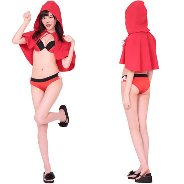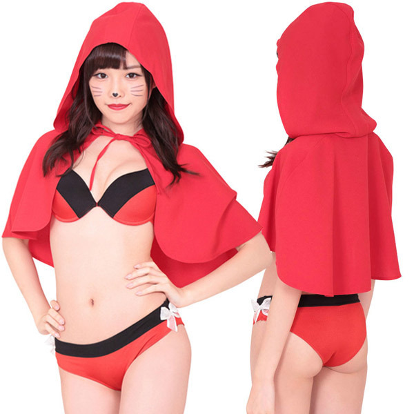ハロウィンや仮装パーティーに!あの有名な童話の主人公が、セクシーな女性へと急成長!?赤ずきん風の大人可愛いビーチビキニ。●頭から背中まですっぽり隠れる赤マント●黒×赤のブラジャー&リボン付きショーツ(ハーフバック)●赤ずきんの象徴!レッドカラー●着用したまま入水も可能●Mサイズ。見た人全員がメロメロになる、セクシーかつキュートな赤ずきんコスチュームです。※セット内容以外は付属しておりません。