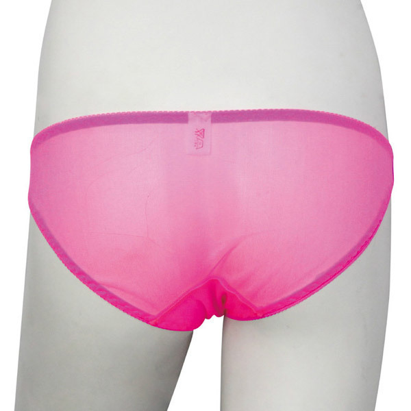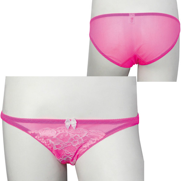 重ねたレースがエレガント!透け感とキラキラ感が美しいスパークハーフ素材のフルバックショーツ。●素肌を透かすピンクシースルー地●フロントに刺繍レース&リボン付き●履きこみしっかりフルバック仕様。透け感の高いシースルー素材にレースを重ねてエレガントに仕上げたセクシーランジェリーです。