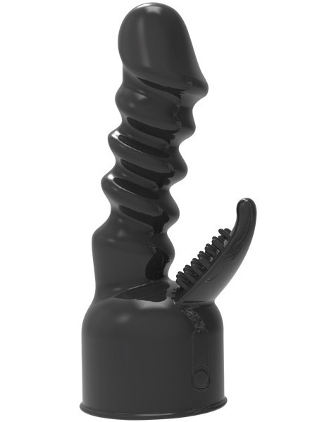 電マが二点責めバイブレーターに変身♪中と外から刺激できる電マ用アタッチメント。●パワーワンド(b24919)用アタッチメント●柔軟・耐久性に優れたエラストマー●逞しいブラックカラーのバイブ型●膣内・クリの2点責め形状●くっきりカリと螺旋の凸凹ボディ●びっしり突起でクリトリス責め。電マの強力振動+うねるフォルムが高刺激を生み出す電マ用アタッチメント!パワーワンドだけでなく、フェアリーミニ(k00003)などヘッドの直径が4.5〜5.2cmの電マに対応しています。