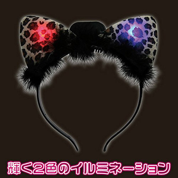 両耳がイルミネーションでピカピカ光る!ホワイトアニマル柄が可愛いネコ耳カチューシャ。スイッチをONにすると、2色のイルミネーションが光り出します。どんなコスチュームとも合わせやすいのでイベントやコスプレで大活躍!ボタン電池(LR44)×3個内蔵。※カチューシャの最大幅が約16.5cmと、小さめサイズになっておりますので予めご了承ください。