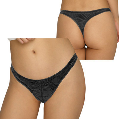 フェリカ生地&レース刺繍ポケット付きオープンTバック ブラック