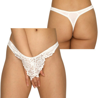 美しいフラワーレースとほんのり透け感のあるトリコットでエレガントに仕上げたオープンショーツ。●大人可愛いホワイトカラー●フロントはフラワーレース●サイド&バックはトリコット素材●クロッチオープンの大胆仕様●セクシーな後姿のTバックタイプ。クロッチ部分に秘密の仕掛けを施したセクシーなオープンランジェリーです。