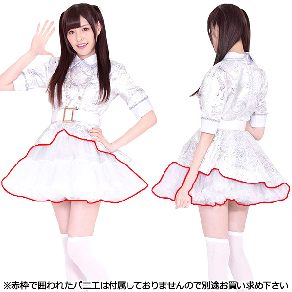 笑顔にメロメロ♪きらびやかなシルバーカラーの王道アイドルコスチューム。光り輝くボタニカル柄の襟付きワンピースに、太めの白ベルトでメリハリ付け!ふんわり広がるボリュームフリルのスカートがとってもキュートなアイドルコスプレです。※セット内容以外は付属しておりません。