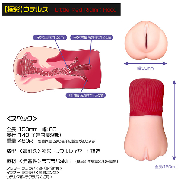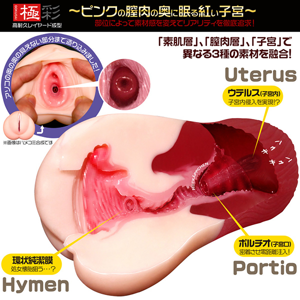 禁断の子宮脱プレイ!異なる3種の素材が融合した究極のウテルス(子宮)セックスオナホール「極彩 ウテルス」。●マジックアイズの極彩シリーズ●インパクト抜群のツートンボディ●素肌層、膣層、子宮の3種素材●すべすべ素肌のアウター部●膣肉ピンク色のインナー部●真っ赤に充血したウテルス部●挿入口付近に環状膜を配置●優しく包み込む柔らかな質感●高弾力な子宮口がお出迎え。部位によって素材感を変え、リアリティを徹底追求した極彩トリプルレイヤード構造!リアルなポルチオ感触を味わえるウテルスオナホール。ローションをたっぷり使えばギチギチの子宮内に侵入できるかも?柔肌と膣内の優しく包み込む柔らかな質感と、締まり抜群の高弾力な子宮の異なる挿入感をお楽しみ下さい。