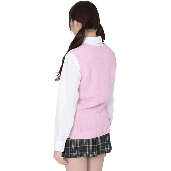 寒い季節に重宝する、可愛らしいピンクのVネックベスト単品!どんな制服コスチュームにもシンプルで合わせやすいコスプレアイテム。ブレザーの下に着ても、普段着使いにもオススメです。※セット内容以外は付属しておりません。