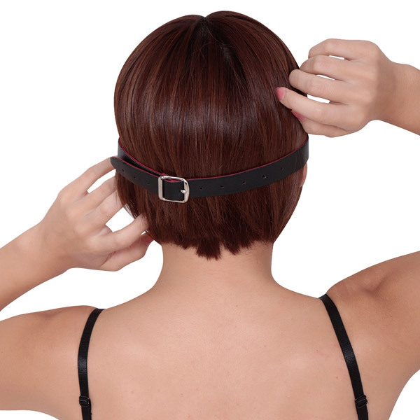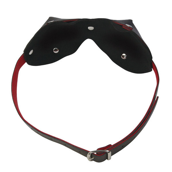 SMプレイの深淵へと導く!赤と黒のフェイクレザーが妖艶な『ABYSS』シリーズのSMグッズ「Abyss(アビス) 厚手二重生地アイマスク」。外側は重厚感のある合皮製、内側は柔らかな生地でクッション性が有るので肌を傷つけず、ロングプレイも安心。材質はフェイクレザー・鉄、サイズ調節可能なベルトの幅は約2cmです。※モデル着用のボンデージ、ストッキング等は付属しておりません。