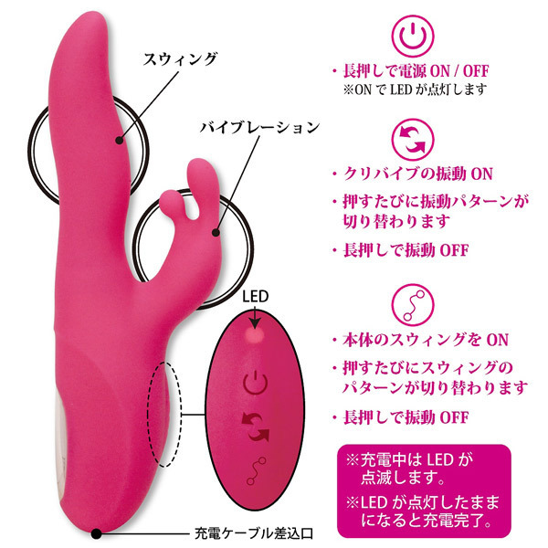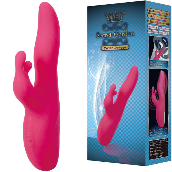 性感帯をグリグリ刺激!滑らかな『生きたスウィング』を体感できるシリコン製の高性能バイブ「シークレットガーデンツイストダンサー」。一定方向へのシンプルなスイングから、左右へ不規則に回転するダンサーの腰のようなクネリ感のある動きまで、6種類の回転パターンを搭載!Gスポットを押し上げるように膣全体をかき回す快感スイングで、かつて無い絶頂へと導きます。全16パターンの強力振動がクリトリスをピンポイントで愛撫します。USB充電式(専用コード付属)。