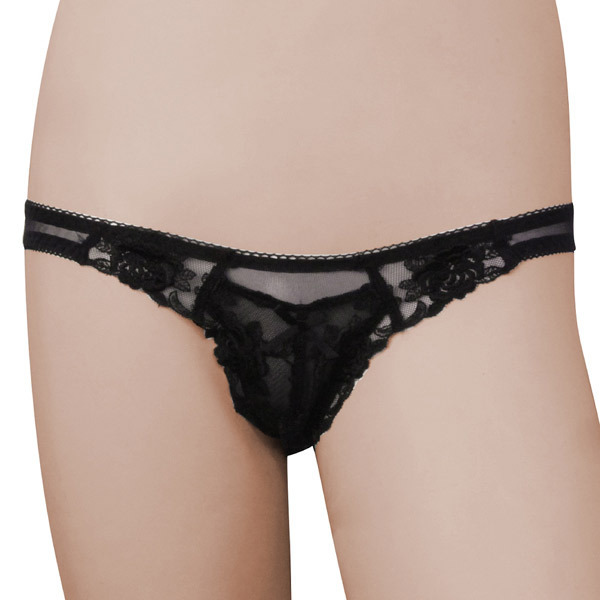 > シースルー&フラワーレースポケット付きフルバック ブラック