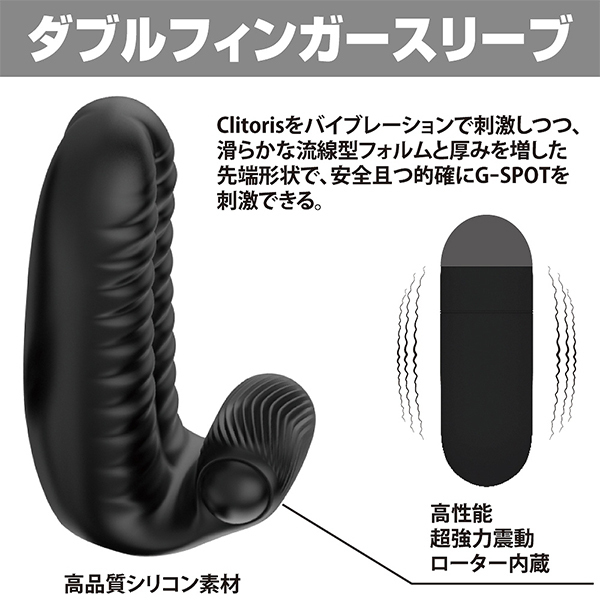 プリティラブから発売された指につけて使うコンパクトなローターです!二本の指にはめて使うだけの手軽さが特徴的。流線型フォルムと出っ張った先端がGスポットを的確に狙えるようになっていて、さらに着脱可能なローターがクリトリスを同時に刺激できる作りになっています♪高品質シリコン素材だから指も曲げやすく、指ならではの繊細な動きを感じられます。また、爪で内壁を引っかいてしまうかもという心配もありませんし、男性からしてもバイブやローターといったアダルトグッズを使用するより「自分で感じてもらえている」という充足感を得られるのではないでしょうか?いつものセックスにプラスで刺激がほしいならぜひ一度お試しください♪