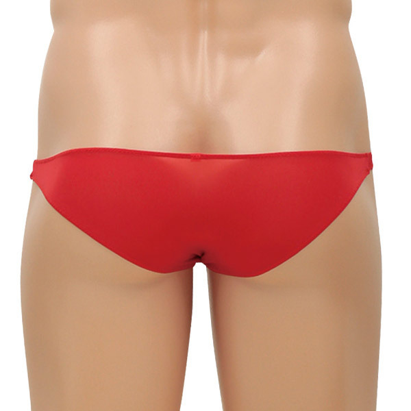 <EROX>シンプルスタイルでセクシーに魅せる大人のメンズランジェリーシリーズ!ギリギリを攻めたレッドカラーの超ローライズショーツ「スプリングフィールド」。スパンデックス5%、ポリエステル95%。