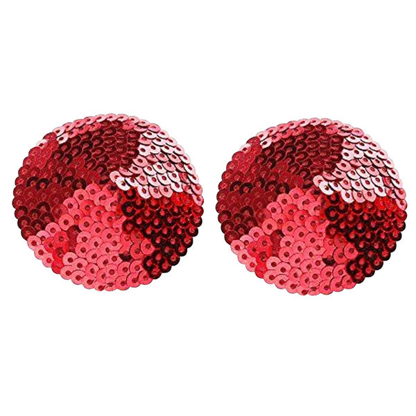 ピタッと貼るだけの簡単仕様♪バストトップ(乳首)に貼るだけで、手軽にオシャレが楽しめる下着感覚のニップルジュエリー「ニップルカバー スパンコールラウンド 赤」。同色ペア1組セット、複数回使用できる強力粘着シールタイプのボディアクセ。きらきらと光るスパンコールで贅沢にデコレーションしたラウンド型ニップルは、ショータイムやナイトパーティーにも最適です。