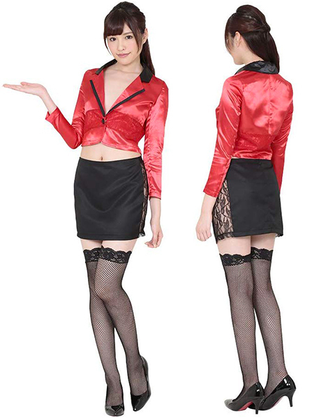 ハロウィンイベントなどに♪カジノディーラーの衣装をお探しならこれ。光沢感のある短めの真っ赤なジャケットがアクセントに!「ラスベガスディーラー」の登場です♪カジノディーラーをイメージしたこちらのコスチュームは、ジャケットとタイトスカートがセットとなっております。スカートの側面は大胆にもレース素材で肌が見えてしまうセクシーなデザイン!赤のジャケットを素肌に羽織ることで、更にアダルトな魅力を引き出せそうですね♪カジノを彩るディーラー衣装でハロウィンイベントや撮影会にもせひどうぞ!