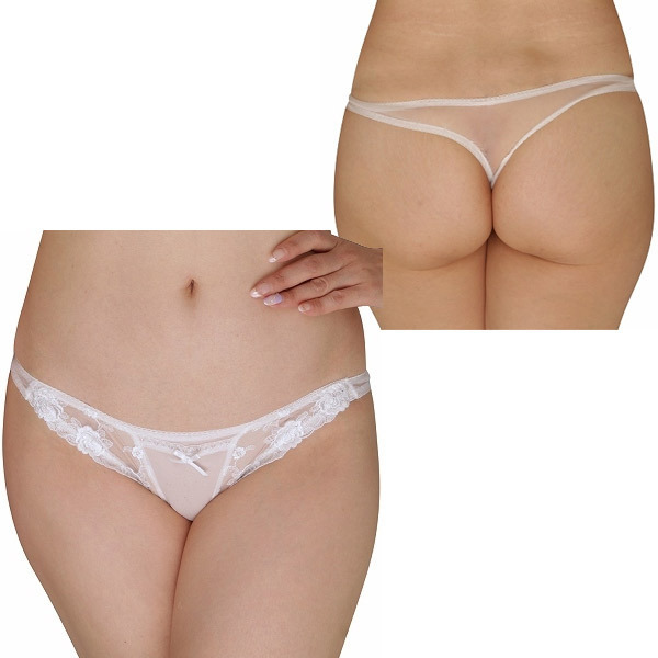 シースルー素材でアソコも透け透けなセクシーTバックショーツです♪白をベースとしたこちらのショーツ、フロント部分に小さめのフラワーを刺繍であしらっていて、気品と清潔さを兼ね備えた美しいデザインとなっています。それでいて透け感のあるシースルー素材がエロさを際立たせ男性の心を揺さぶります♪さらにとどめの一撃と言わんばかりに、クロッチ部分にはローターが収納できるポケット付きだからパートナーも興奮必至!1人で使うのはもちろん、ナイトプレイにもオススメです。※ローターは付属しておりません。