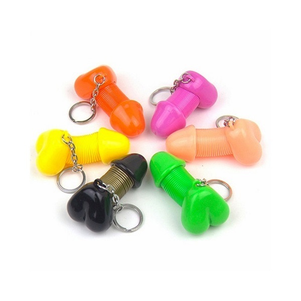 風俗店舗様などのノベルティグッズにも最適!ユニークな小さなペニス型のリングキーホルダーが登場しました♪サオ部分のスプリングを伸ばすと最大25cmまで伸びる面白グッズ。見た目もさることながらカラーも肌に近しい色味で、ジョークグッズとしてお友達にプレゼントすれば盛り上がること間違いなし!