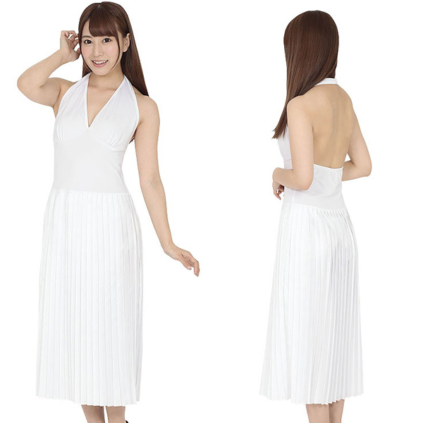 1900年代、あの名女優が演じ、纏った衣装をモチーフとしたホワイトカラーのハロウィンコスプレ。大胆にV字カットされた胸元と大きく開かれたバックスタイルは、20世紀最強とも言えるセックスシンボルにも引けをとらないセクシーさで貴方を輝かせる♪吹き上げる風を演出することでプリーツ多めのスカートがふんわりと優雅に広がり、あの名シーンが再現できちゃうかも!?お好みでタトゥーシールを貼って更なるハロウィン気分を味わうのも♪