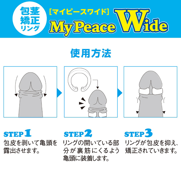 ロープライスで人気の包茎矯正リングが3倍ワイドになってバージョンアップ!従来よりもさらにズレにくく、外れにくくなりました♪包皮を剥いて簡単ワンタッチに装着!亀頭を露出して清潔さをキープしつつ、付けていることで徐々に剥きグセをつけてくれる矯正リングです。リング幅がぐぐっと3倍になっているので皮が多い人でも安心♪最大の特長は尿道や裏筋を締め付けない特許取得済み(意匠登録第1544081号)のオープンなC型リングと、人間工学に基づいた3D特殊形状。リング内側の絶妙な傾き加減に、カリ首にぴったりフィットする他にはない快適さとグリップ力♪大きく山なりに盛り上がった部位が、ぶ厚い皮の逆流をまるで堤防のようにせき止めてくれます。こちらはソフトな夜用のSサイズになります♪信頼性の高い日本製エラストマー「メディカルスキン」を採用で安心!