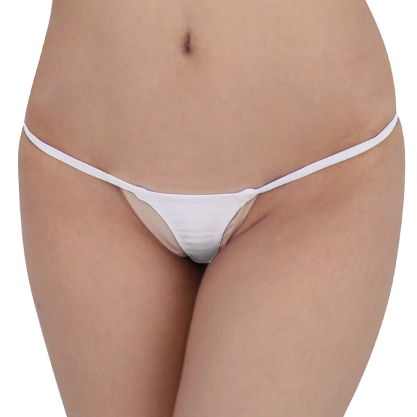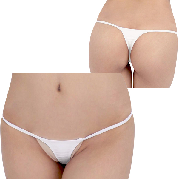 極小サイズの光沢生地で大胆に攻める日本製Tバック(白)。肌触り柔らかなTバックは穿き心地抜群!見えるか見えないかのギリギリ感がたまらない一枚です。