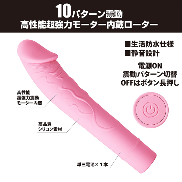 浮き立つ血管とカリが情欲を煽る♪女性人気の高い「プリティラブ」シリーズにリアル造形の電池式スティックバイブ(ピンク)が登場。高性能な超強力モーターが生み出す10パターン振動!ピンポイントに押し当ててみたり、奥まで挿入したり突いてみたりと使い勝手抜群♪高品質な医療用シリコン素材で肌に優しく敏感な方にも最適です。生活防水&静音設計、単三電池1本を使用